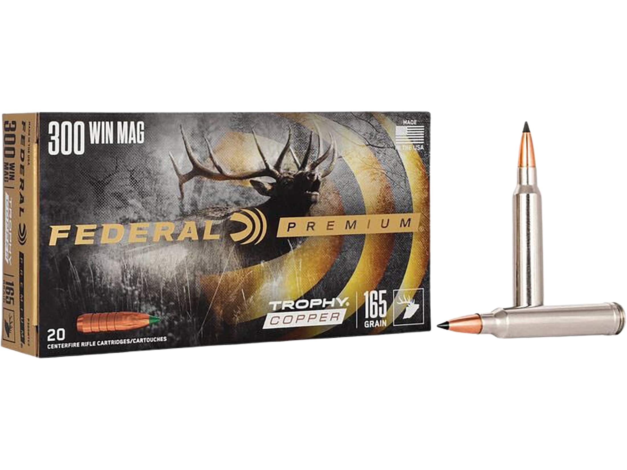 Federal Premium Trophy Copper 300 Winchester Magnum Ammo 165 Grain Federal Trophy Copper Polymer Tip Lead Free Box of 20
