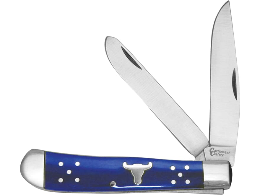 American Buffalo Knife & Tool Cattleman Trapper Pocket Knife 3.5" Clip Point 8Cr13MoV Satin Blade Delrin Handle Blue