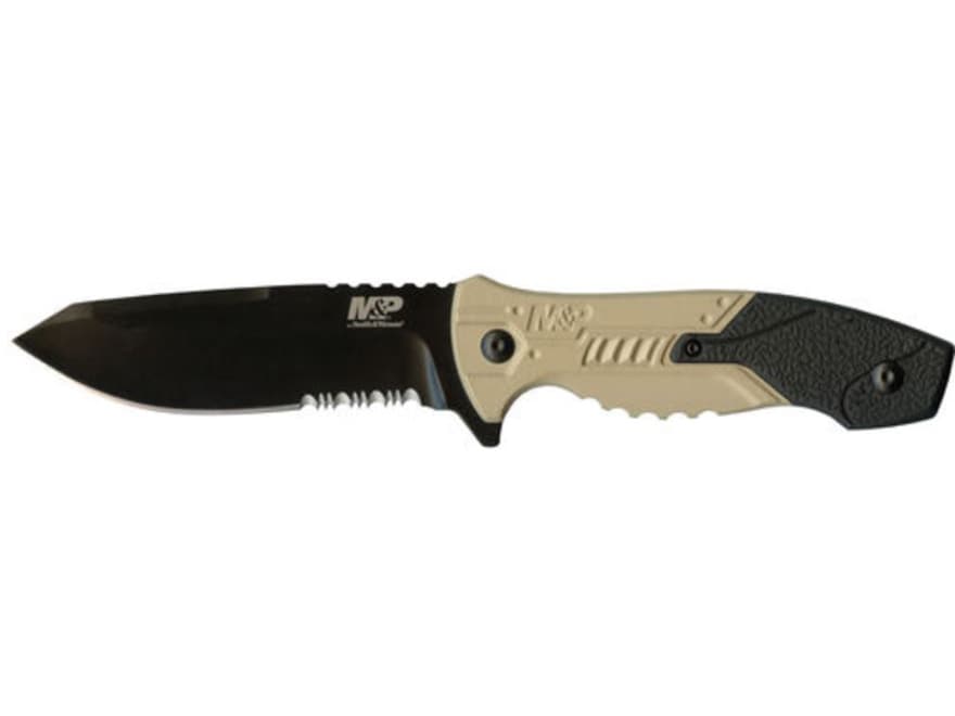 Smith & Wesson SWMPF2CS Fixed Blade Knife 4.1" Partially Serrated Drop Point 8Cr13MoV Stainless Black Blade Aluminum Handle Tan