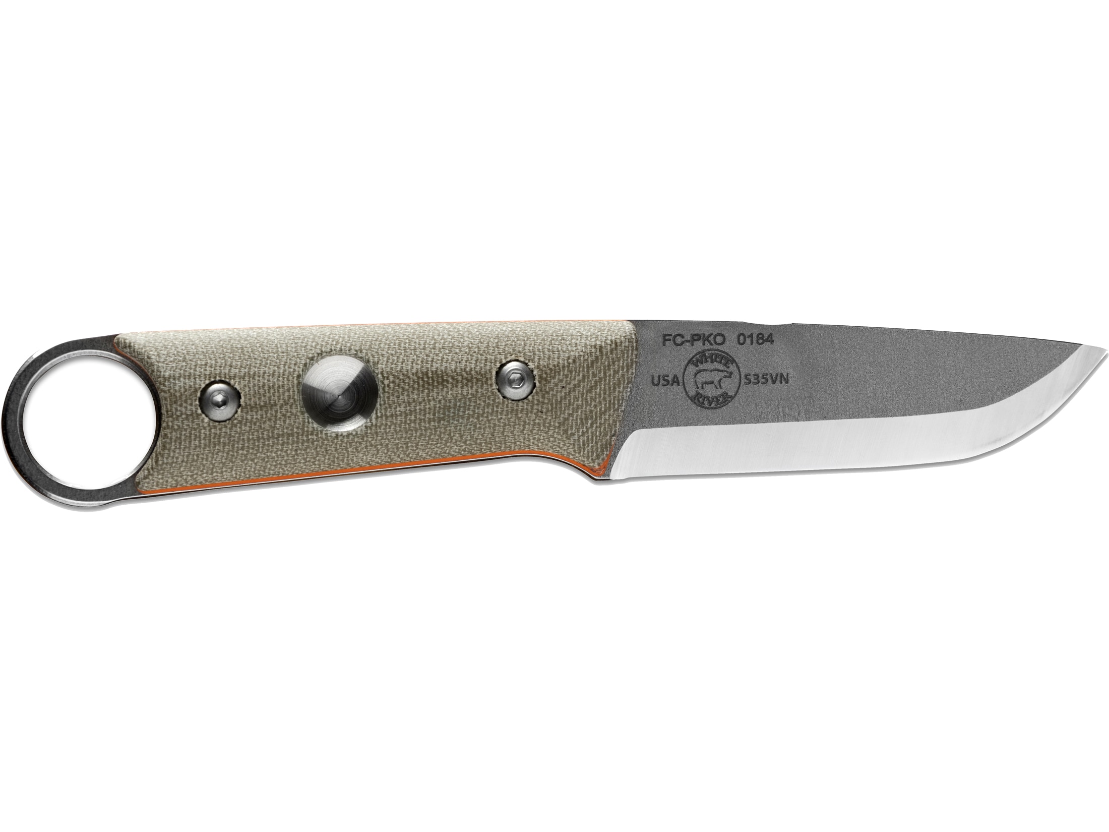 White River Knives Firecraft PKO Fixed Blade Knife 3.7" Drop Point CPM S35VN Stonewashed Blade Canvas Micarta Handle Green