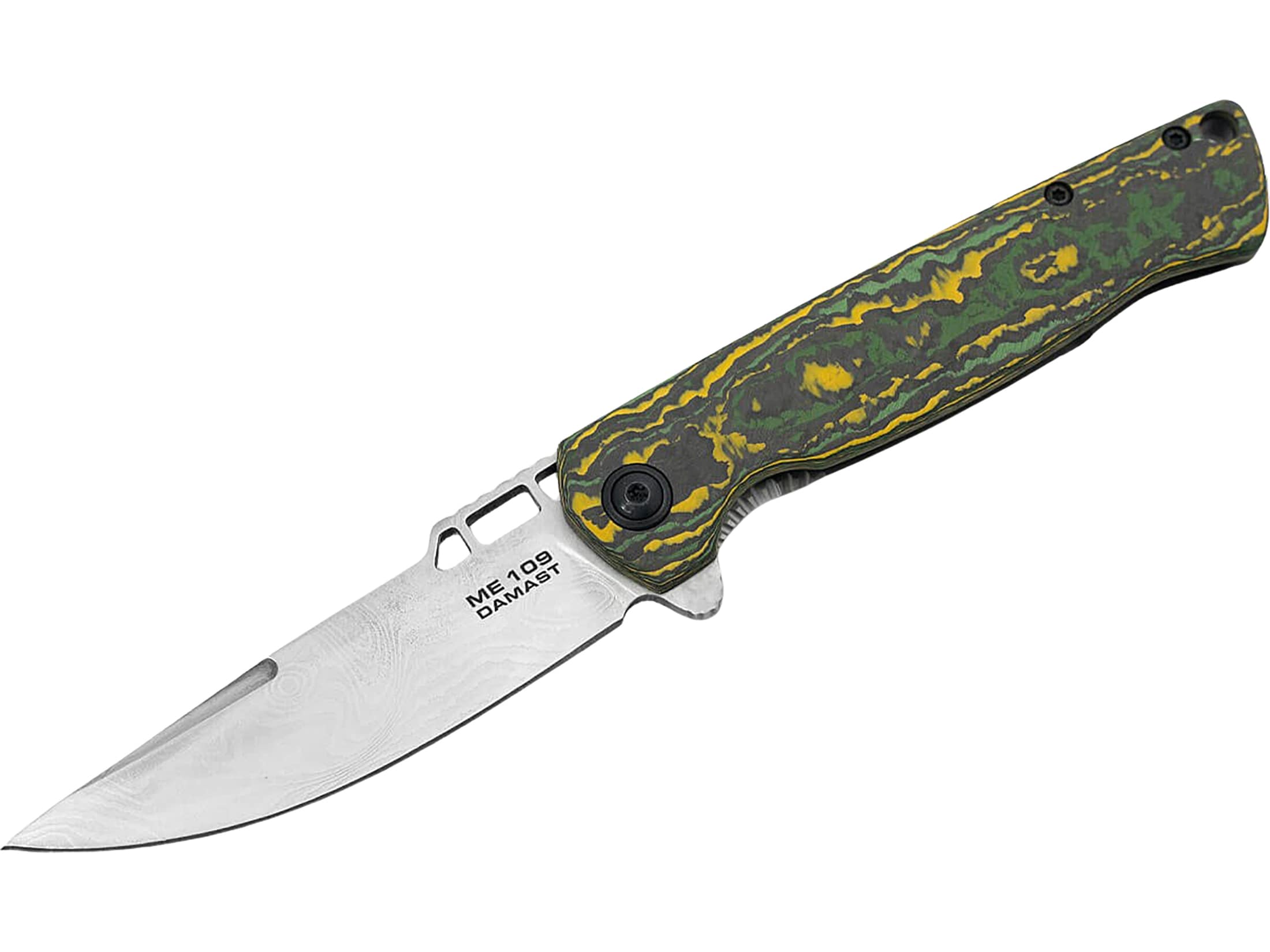 Boker Knives ME 109 Damast Pocket Knife 3.15" Drop Point Damascus Blade Fat Carbon Handle Green