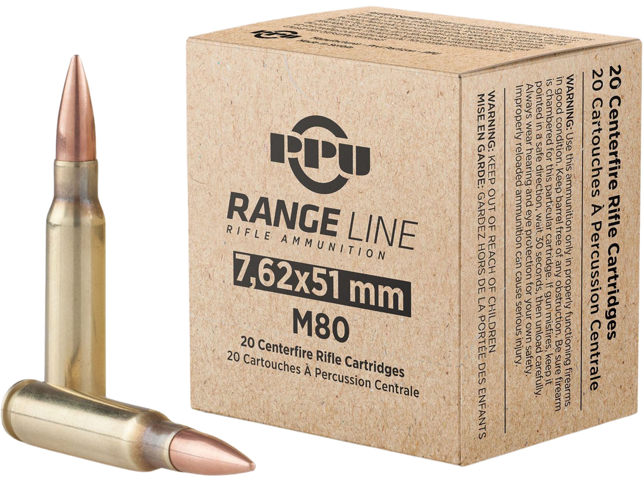 PPU Range 7.62x51mm NATO Ammo 145 Grain Full Metal Jacket Box of 20