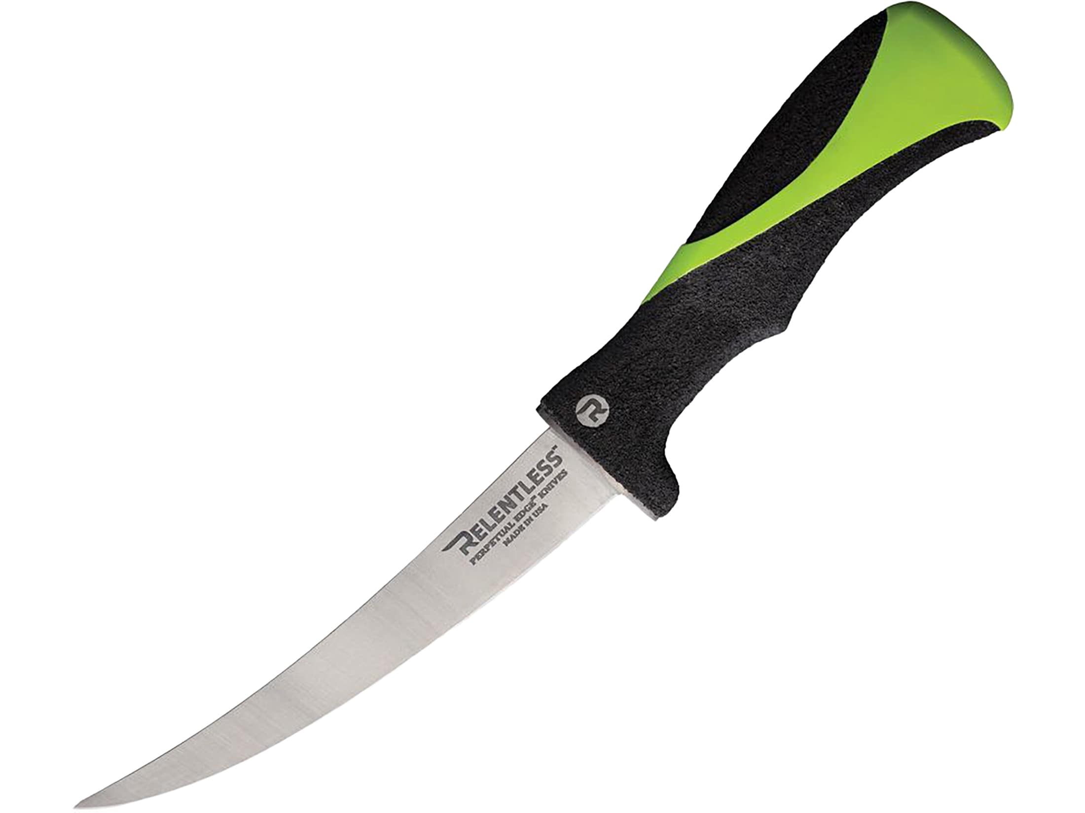 Relentless Knives Curved Fillet Knife 7" Fillet Titanium Satin Blade Glass Reinforced Nylon (GRN) Handle Green/Black