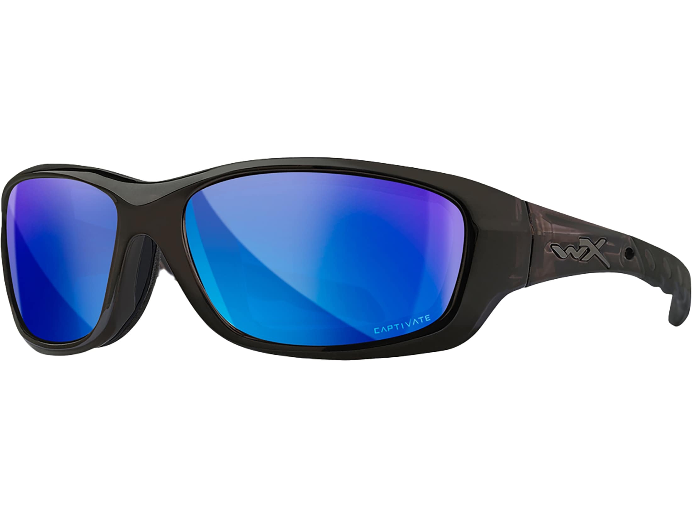 Wiley X Gravity Polarized Shooting Glasses Black Crystal Frame Blue Mirror Lens