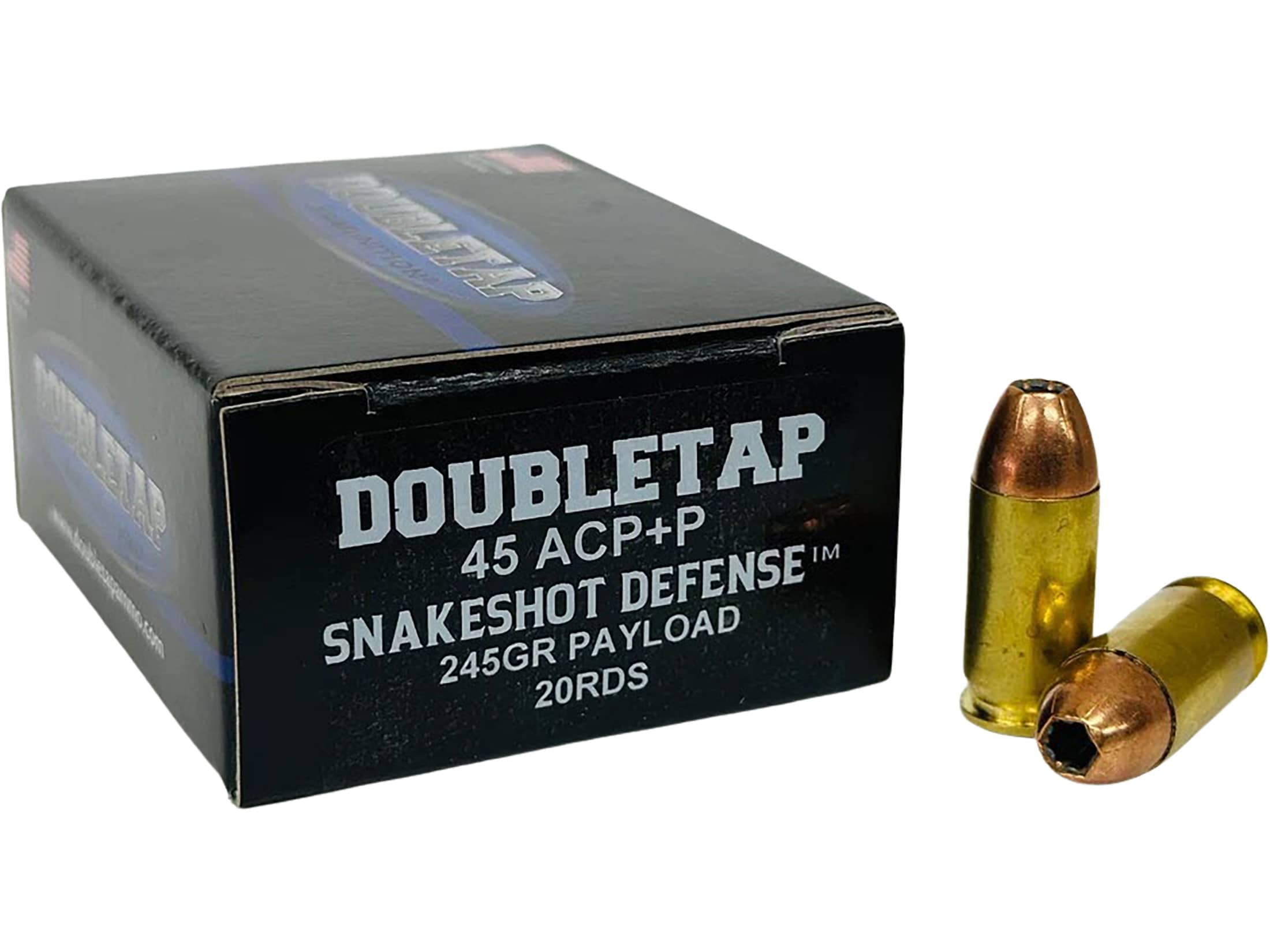 DoubleTap SnakeShot Defense 45 ACP +P Ammo 245 Grain Jacketed Hollow Point and Shot Box of 20