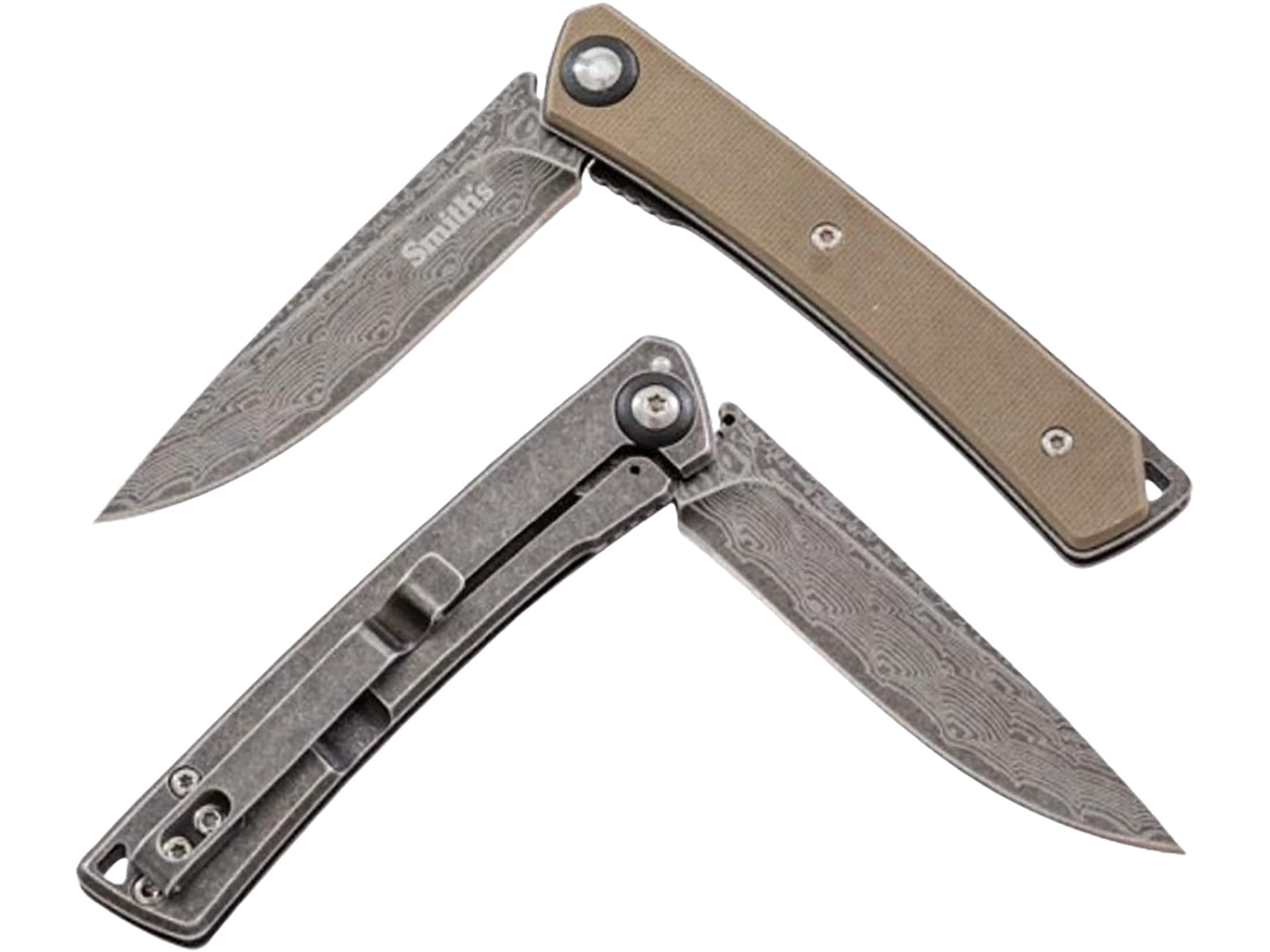 Smith's Ecesis 4 Pocket Knife 3" Drop Point 3Cr13 Damascus Blade G-10/Stainless Steel Handle Black/Tan